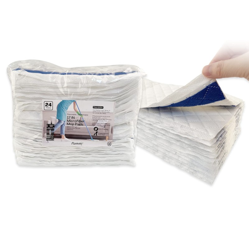 18 Inch Microfiber Disposable Mop Pad 24 Pack for All 16-18'' Hook & Loop System Mop, Wet Dry Cleaning Pad Compatible with Bona,Rubbermaid,Turbo,Norwex (18 in, 24 Pack)