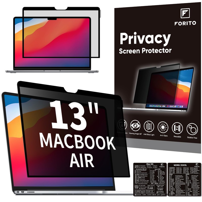 F FORITO Laptop Privacy Screen Compatible with Macbook Air 13 Inch(2018, 2019, 2020, 2021, M1), Removable Anti Blue Light Crystal Clear Computer Privacy Screen Protector