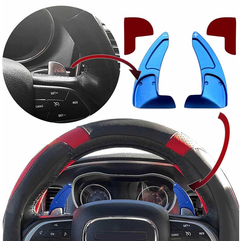 F-LptStor Steering Wheel Shift Paddle Extended Shifter Trim Cover for Dodge Challenger Charger Durango RT & Scat Pack 2015-2024, for Jeep Grand Cherokee 2014-2021 (Blue)