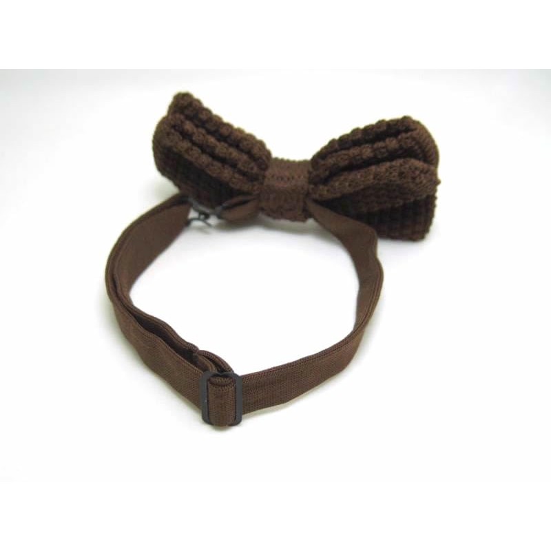- A simple and elegant bow tie made from a knit material that is gentle to the touch
