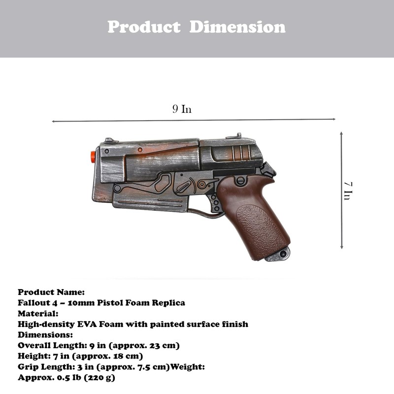 - 🎮 Iconic F-out 4 Sidearm – Foam replica of the legendary 10mm, one of the most recognizable weapons from the Fallout universe.