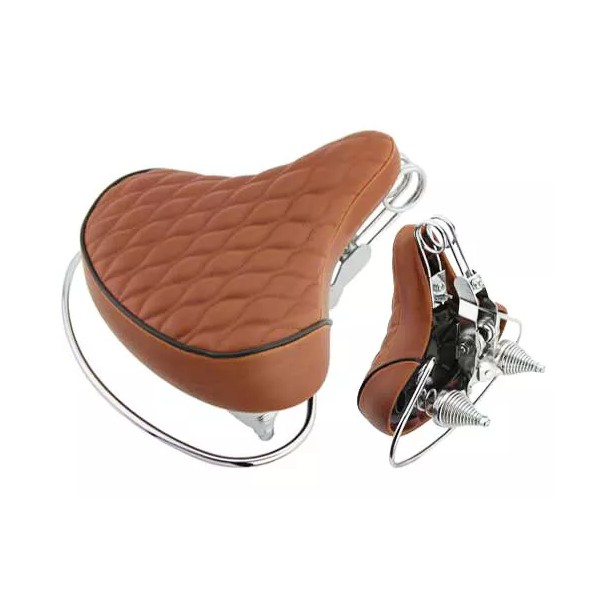 F&R NEW! 10" LONG BEACH CRUISER VINYL SADDLE IN A DIAMOND STYLE WEB SPRING IN BROWN.