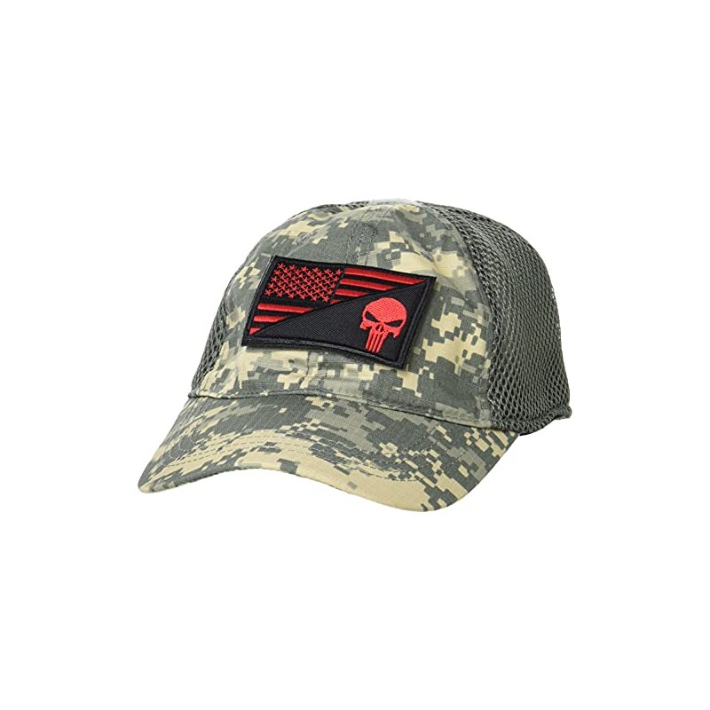 F Style Cap with Stars and Stripes Patch, Sweat Absorbent, Quick Drying, Tactical Camo Mesh, Gray, Free Size, gray