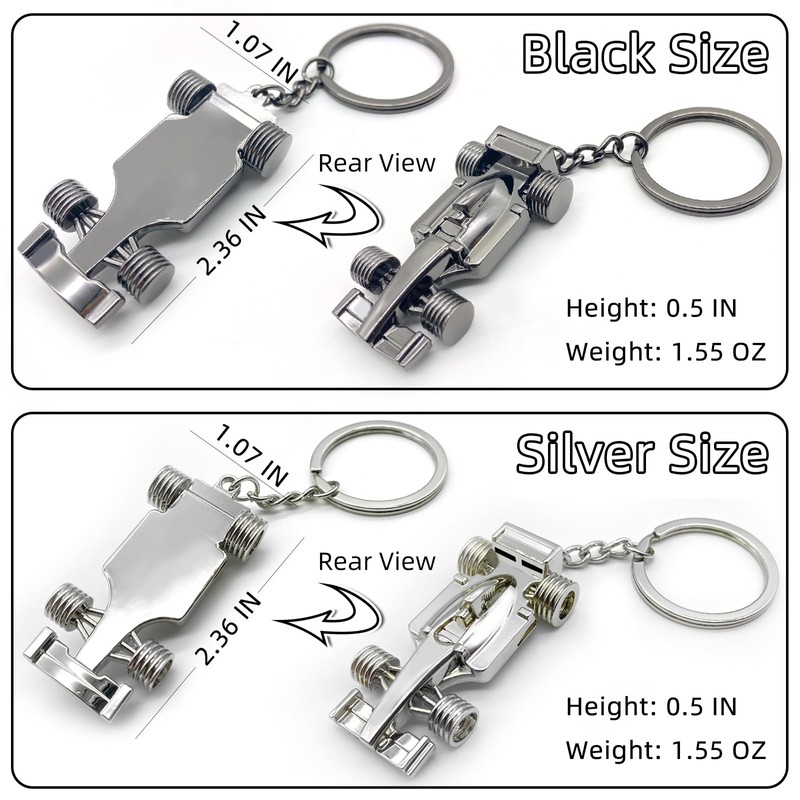 F1 Keychain (Silver and Black 2-Pack), Cool 3D Metal Racing Car Model Keychain, Can Be Given as a Gift to Boyfriend, Husband, Father, Driver and All Fans Who Love F1