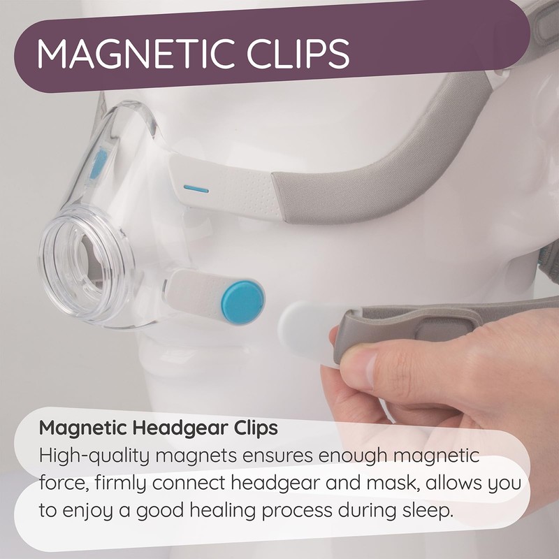- Headgear clips with high-quality magnets ensures enough magnetic force, firmly connect headgear and mask, reducing hassle before bedtime and upon waking, allows you to enjoy a good healing process during sleep, KEEP the mask magnets at a safe distance of at least 6 inches away from devices that may be adversely affected by magnetic interference