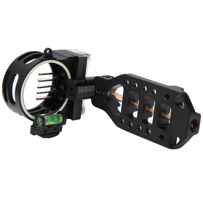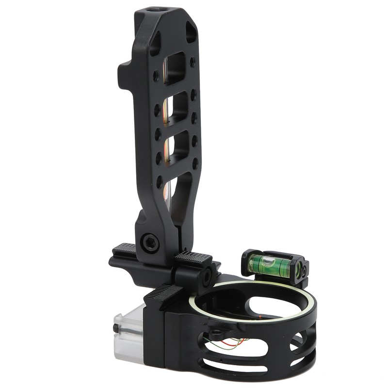 1、Clear scale auxiliary adjustment, improve the accuracy of archery. 2、The aim point is clear and easy to aim at and can be used at night. 3、Adjustable, suitable for left and right handed users. 4、Simple installation, fix it on the handle with the original screw and use it. 5、The 5‑pin range finding bow sight is made from aluminum alloy, durable.