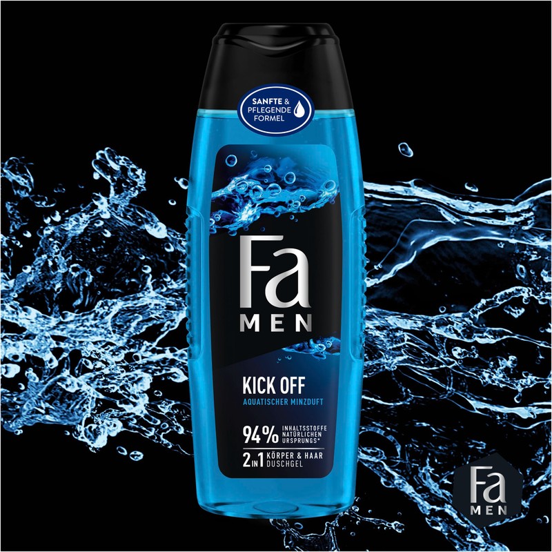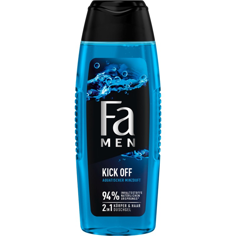 FA Men 2-in-1 Kick Off Shower Gel, Pack of 3 (3 x 250 ml) 2-in-1 Formula for Hair and Body, Activate Your Senses with the Intense, Masculine-Fresh Fragrance of Eucalyptus and Aquatic Mint