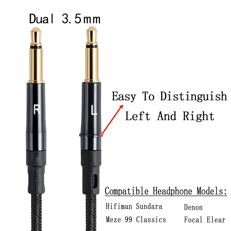- (1)Compatible with:Hifiman Sundara Arya Ananda HE4XX HE560 HE400SE HE-350 HE1000 HE1000 V2(Latest Version with Both 3.5mm Plug),HE400i(Latest Version with Both 3.5mm Plug) (* Not For Hifiman Deva Pro,the old version HE1000 V2/HE400i with dual 2.5mm plug.). (2)Compatible with: MEZE 99 Classics,99 Neo.(3) Compatible with:Denon Denon AH-D600, AH-D7200, AH-D7100, AH-D9200, AH-D5200. (4)Compatible with: Beyerdynamic T1Ⅱ、T5PⅡ、T5PⅢ.(5)Compatible with: Final d8000 Pro.(6)Compatible with: SONY MDR Z1R,MDR Z7M2 .