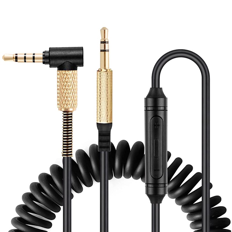 FAAEAL Solo3 Coiled Audio Cable Replacement for Beats Studio3/Marshall Major3 Major4 Wireless Headsets,3.5mm in-line mic Volume Control Headphone Cord (8ft w/mic 2-Pack)