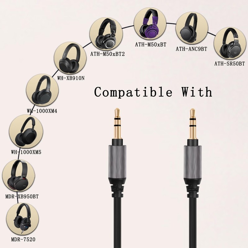 FAAEAL WH-1000XM5 Audio Cable Compatible for Sony WH-1000XM4 XM3 MDR-1000X MDR-XB950BT Noise Canceling Headsets Technica ATH-M50xBT SR50BT AR3BTBK Wireless Headphones(4.2ft 2-Pack)