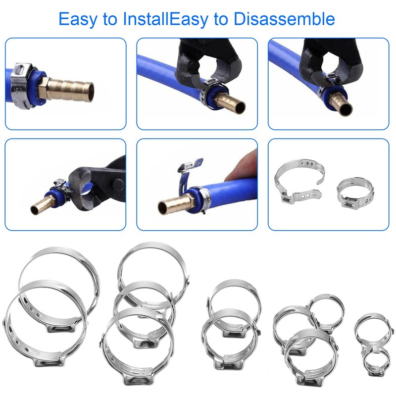 - High-quality material: the stepless precision hose clamp with one ear is made of 304 stainless steel, corrosion-resistant, does not rust for long-term use.