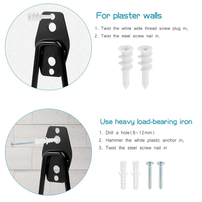 • One size fits all needs: There are 4 wall-mounted ladder hooks in one size: 4 square garage hooks. It also comes with 16 steel screws, 8 white wide threaded plugs and 8 white plastic anchors. Compared with single hooks, our garage hooks have two holes to hang most items easily