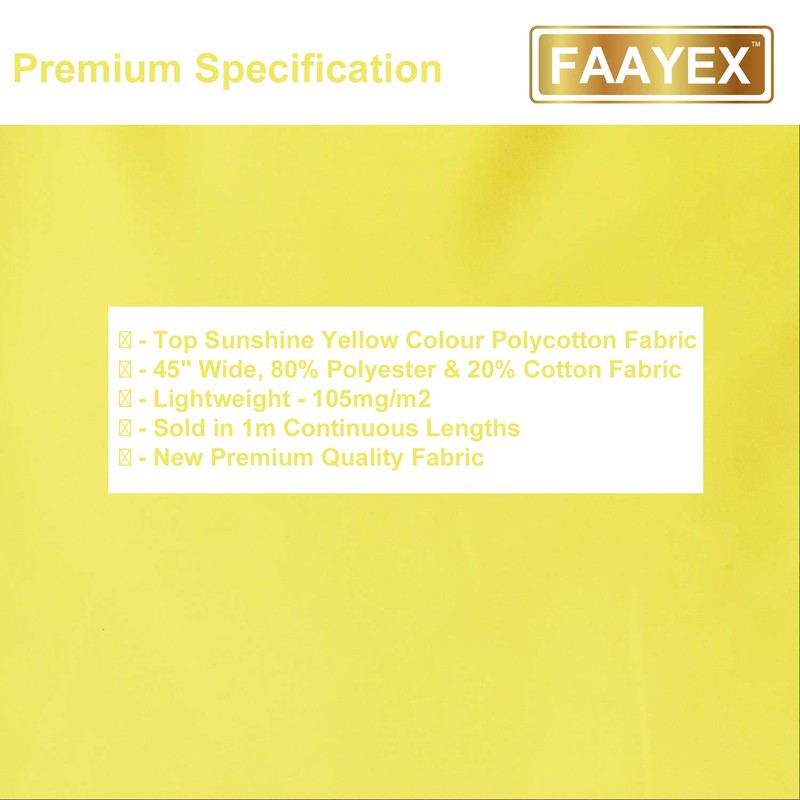FAAYEX (TM) Deluxe Bright Sunshine Yellow Polycotton Dress & Craft Fabric | 80% Polyester, 20% Cotton | 1 Metre Length, Width 45" | Weight: 105gr/m2