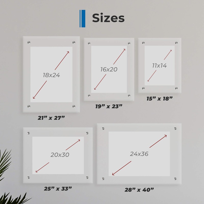 - Floating Single Panel: Your artwork will be placed on acrylic photo frame measuring 23x8 inches, secured by magnets. Wall mount picture display is 1/8 inches thick and can hold art size up to 5x7 inches.