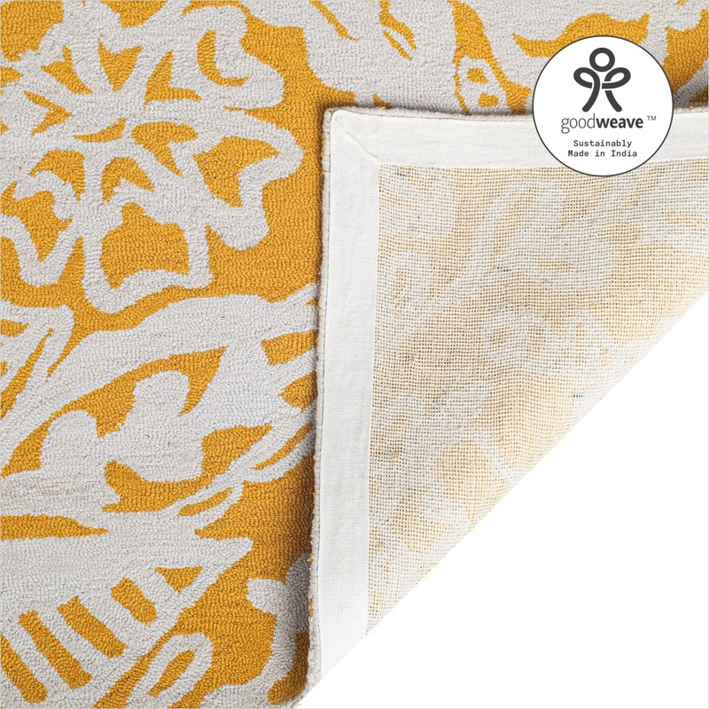 Fab Habitat Hand Hooked Area Rug - Stain Resistant, Plush/Soft Underfoot, Wool-Like Texture - Premium Recycled Polyester Yarn - Abstract Floral - Kitchen, Bathroom - Glamis - Mustard Yellow - 2 x 3 ft