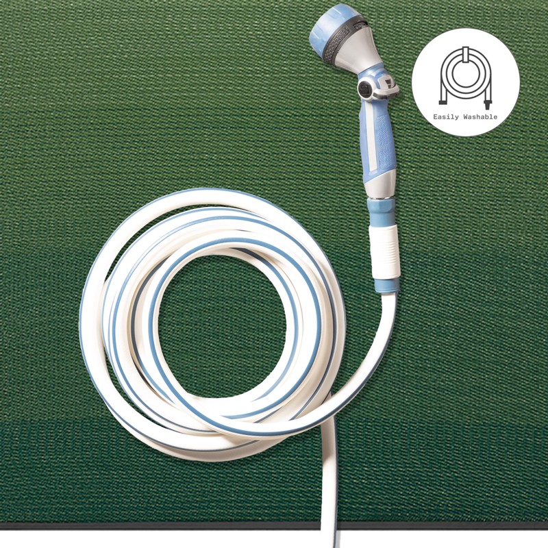 - Waterproof rug - These durable rugs for outdoors do not absorb moisture, are stain resistant and are easy to clean with a hose. UV resistant for long lasting colors and comes with 1 - year warranty