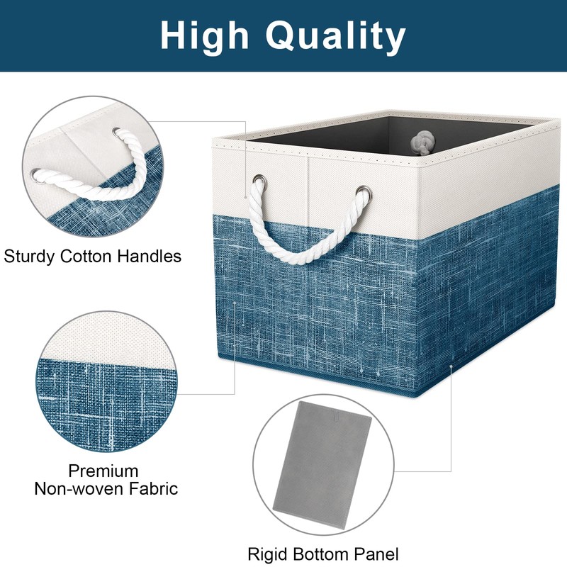 Fab totes Storage Bins [4-Pack], Foldable Storage Baskets for Organizing Toys, Books, Shelves, Closet, Large Storage Box with Rope Handles, Sturdy Organizer Bins, White & Blue
