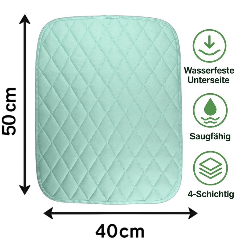 FabaCare Incontinence Seat Cover with Waterproof Backing, 4-Ply High Absorbency, Washable up to 95°C, Dimensionally Stable, 50 x 40 cm, Colour: Light Green