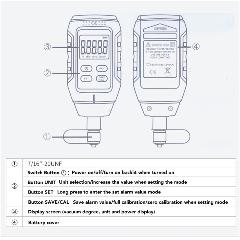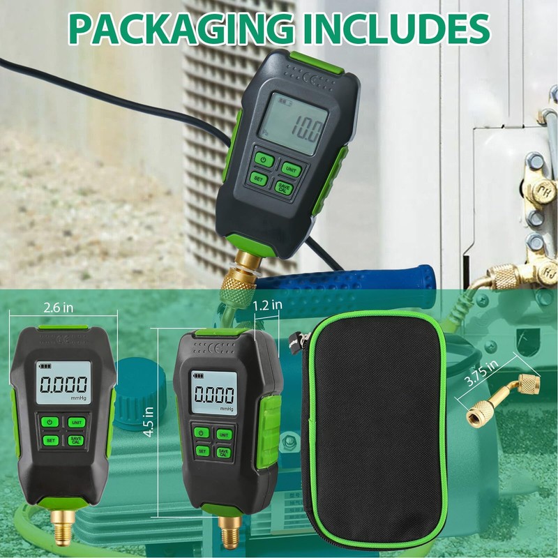 - [PRECISIÓN PROFESIONAL] Equipado con un sensor de vacío profesional, este vacuómetro digital ofrece una medición precisa de los niveles de vacío y tiempos de respuesta rápidos.