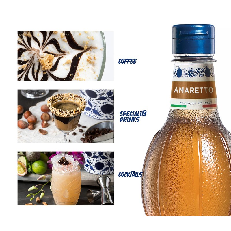 - (1) PET bottle of Fabbri Flavoring Syrup, Amaretto, with flip cap and drip guard