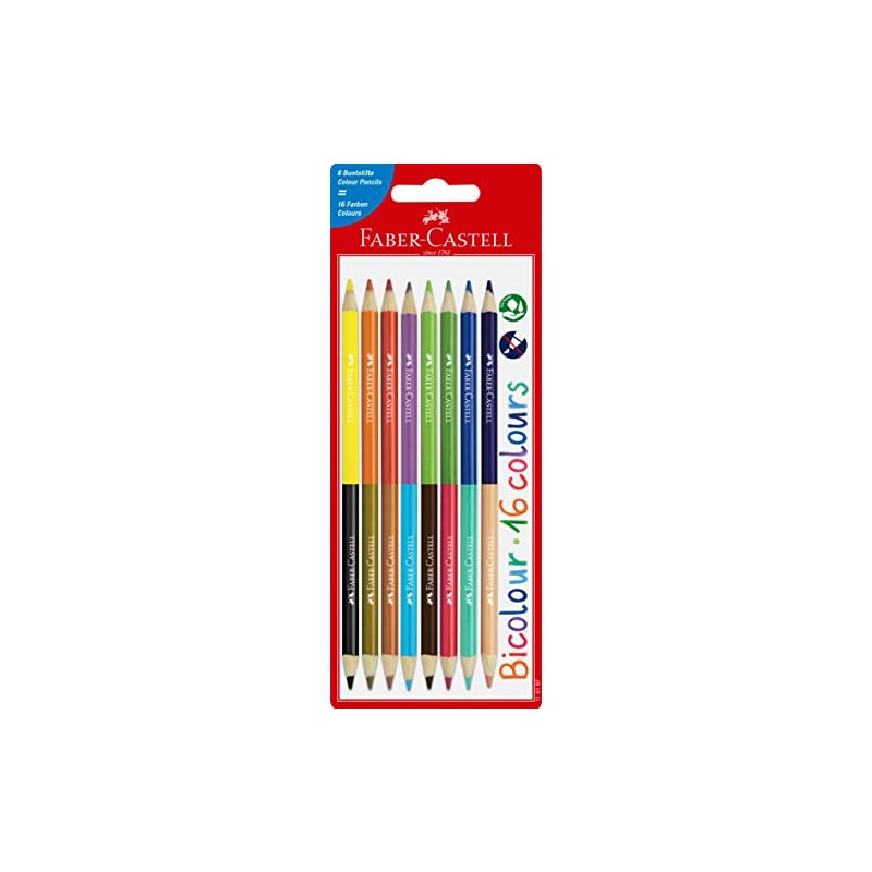 FABER-CASTELL 116197 Colouring Pencils Set Bicolour 8 with 16 Colours