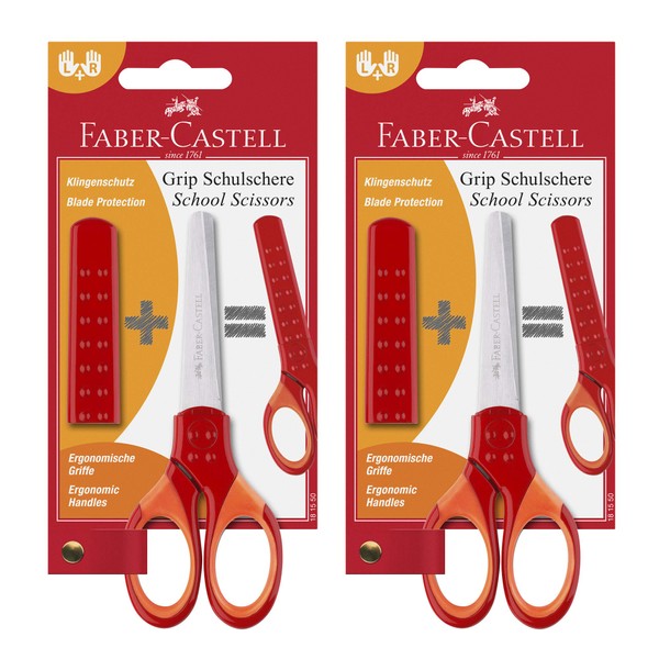 Faber-Castell Faber-Castell - Schulschere Grip mit Klingenschutz (2x rot)