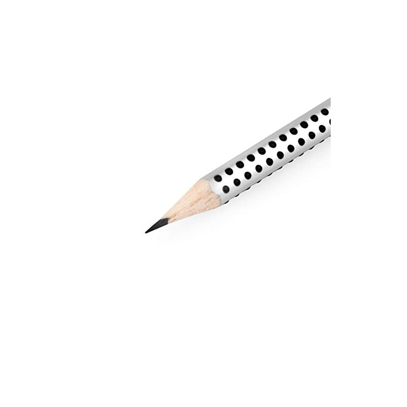 - This set contains three graphite pencils with a B lead and silver barrel.