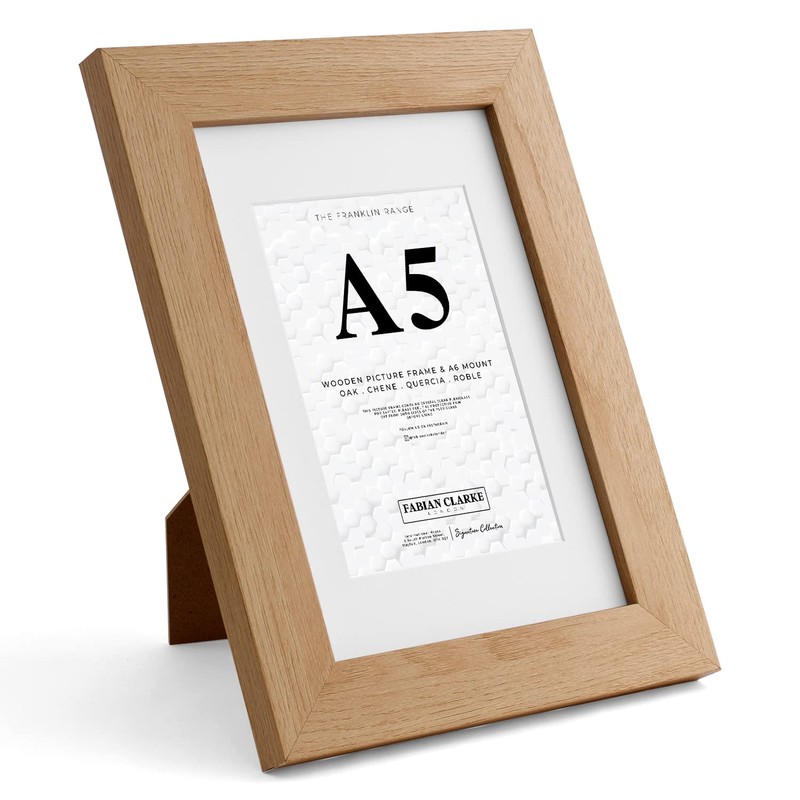 Fabian Clarke London® A5 Modern Oak Wooden Picture Photo Frame with White A6 Mount to Hang Portrait or Landscape
