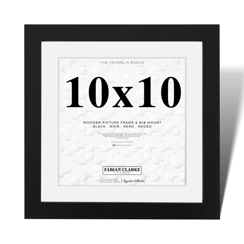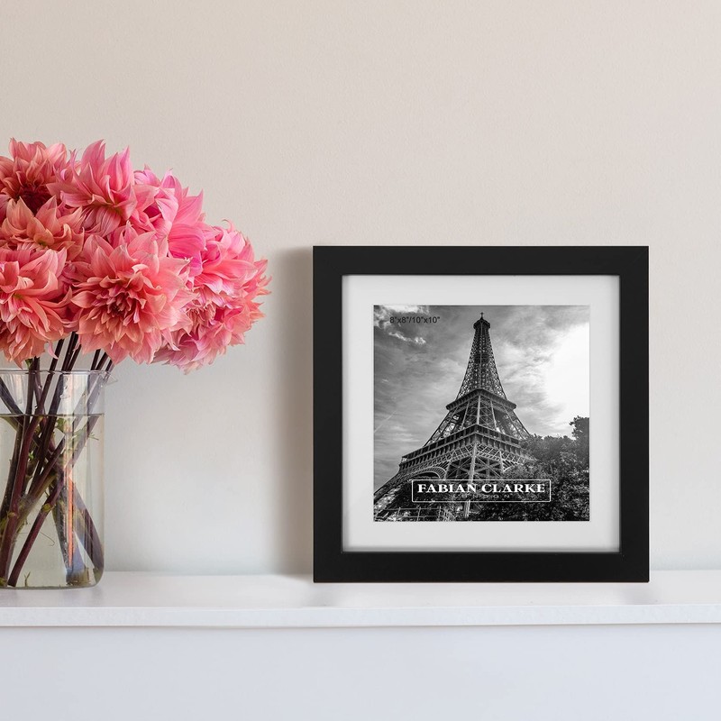Fabian Clarke London® Modern Black Square 10x10 Picture Photo Frame with 8x8 White Mount Wall Hung or Freestanding