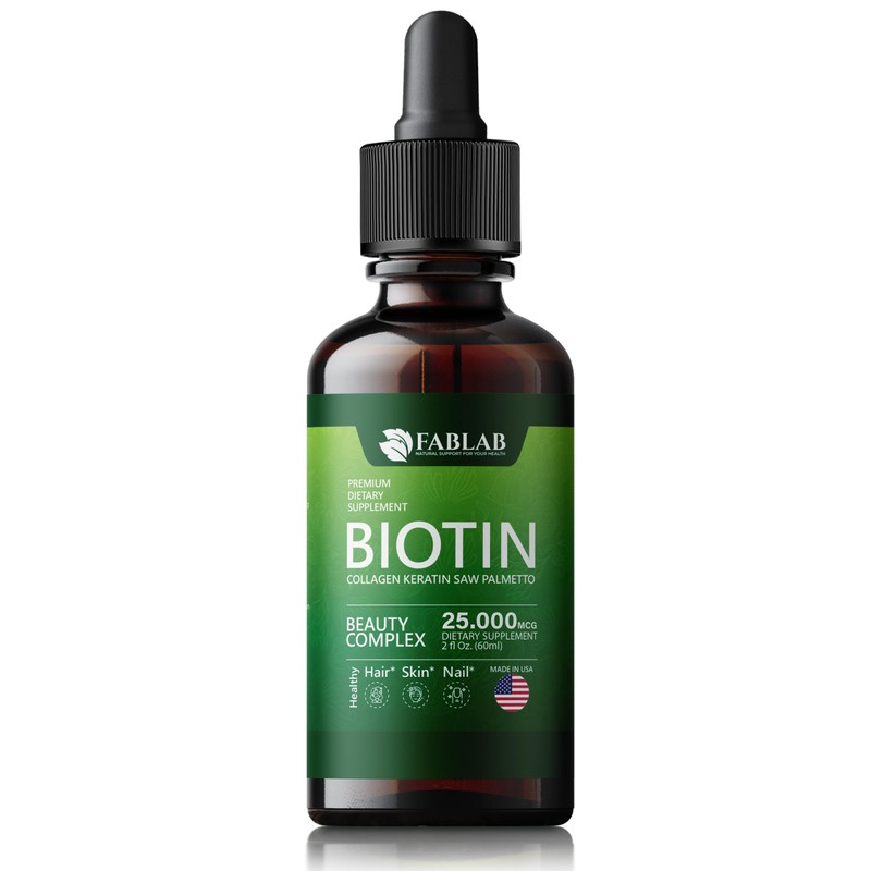 FabLab Biotin with Collagen, Keratin and Saw Palmett 25000msg Extract - Healthy Hair Skin & Nails for Adults, No Filler, No Stearate-Anti Aging Collagen Vitamins for Men & Women- 2 Fl Oz