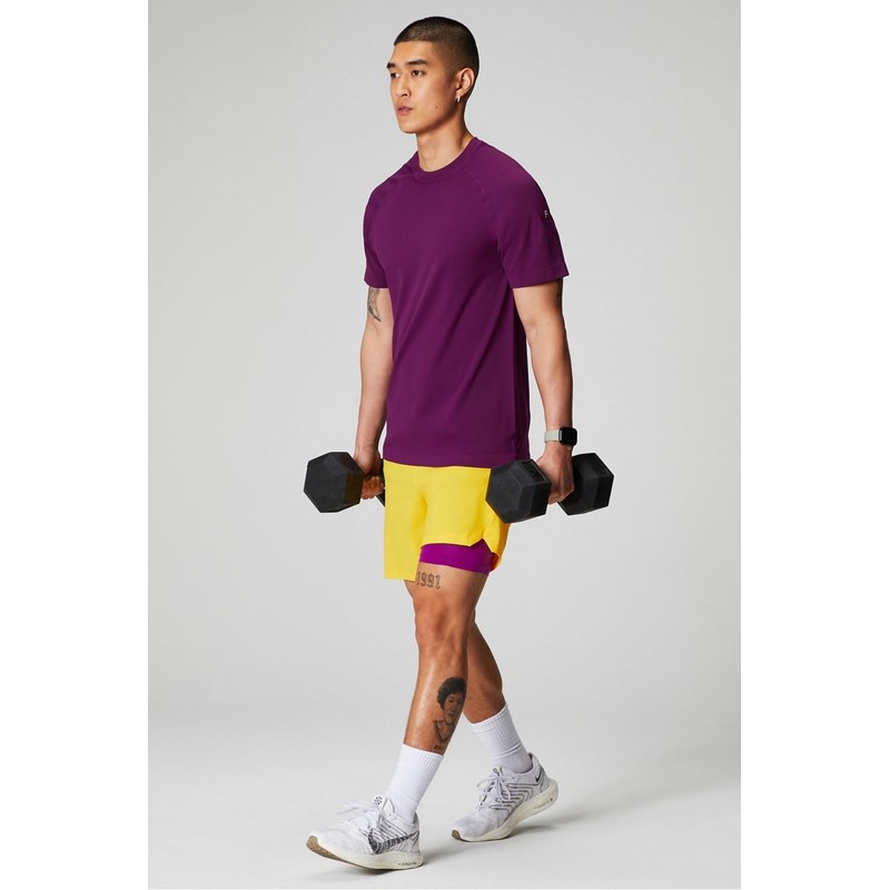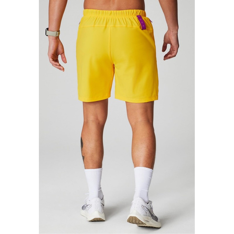Fabletics Men's The One Short (Lined), Training, Swimming, Lightweight, Quick-Dry, Zip Pocket, Stretch Woven, 7" Inseam, XS, Sunset Yellow