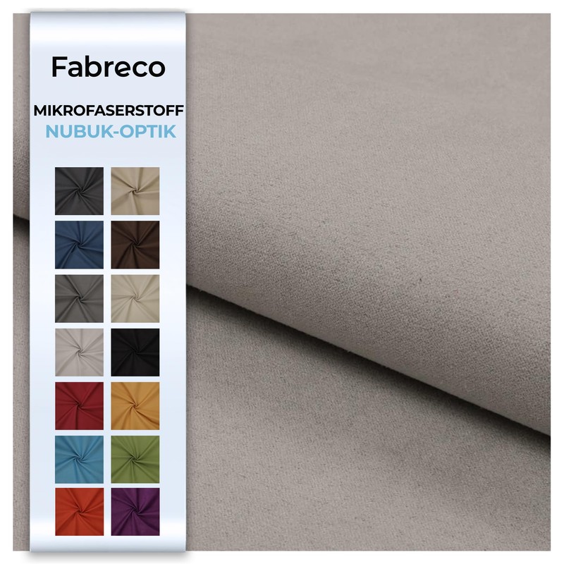 Fabreco NUBUK Upholstery Fabric Sold by the Metre 148 cm Wide, 100% Polyester, Weight 300 g/m, Microfibre, Suede Ideal as or Furniture Fabric for Sofa Cushions, Upholstery Covers - Light Grey