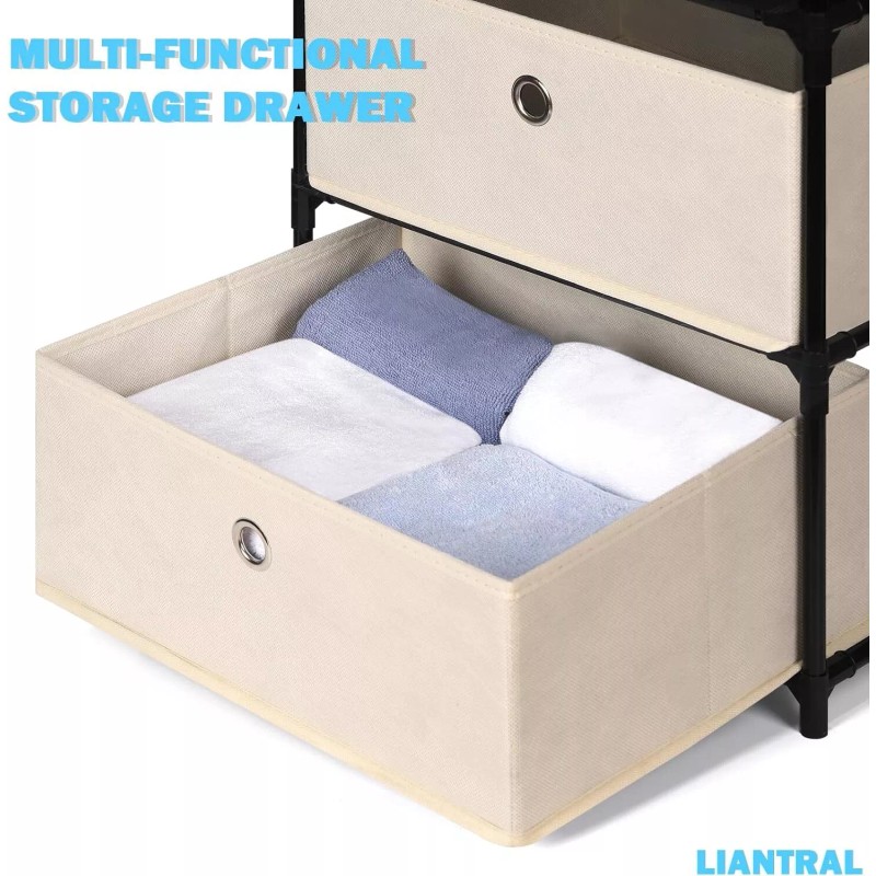 【Multiple Scenario】The hollowed-out metal handle combined with Non-woven fabric makes these dresser bins open and close quietly. It's great for nursery, bedrooms, and college dorms as a closet dresser, or a convenient end table by sofa, a toy organizer in children's rooms.