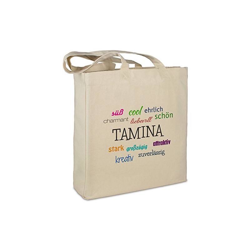 Fabric Bag with Name Tamina – Positive Features Motif – Beige – Fabric Bag, Jute Bag, Shopping Bag, Bag, beige