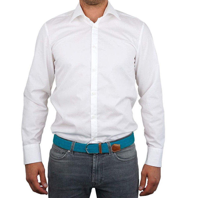 Fabric Belt Stretch Braided and Elastic Belt for Men and Women Length 100 cm to 130 cm - turquoise