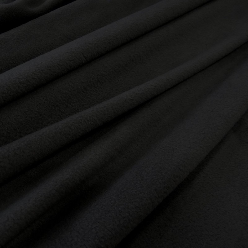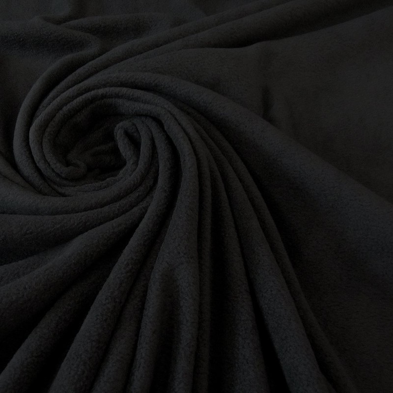 - Cuddly fleece fabric in black. This cuddly soft and wrinkle-free fleece fabric is roughened on both sides and has an anti-pilling finish. The fabric does not fray, meaning it does not necessarily have to be hemmed. Ideal for clothing of all kinds, for cuddly cushions, crawling blankets, footmuffs and much more. This is a thick, sturdy product. No slippery fleece fabric without substance