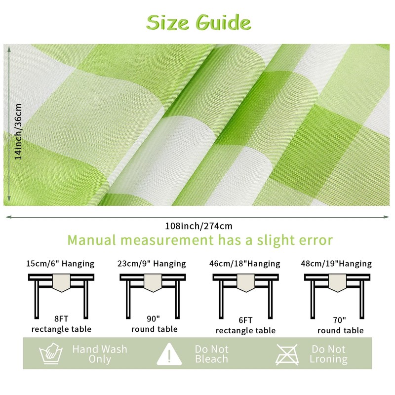 • 【Maintenance and After-sales】The gingham table runner is quick-drying, machine washable and drying, which can greatly reduce your burden of cleaning the tablecloth. If you have any questions about the product, you are also welcome to contact us at any time, we will be the first time for you to solve the problem, and strive to create a good shopping experience for you.