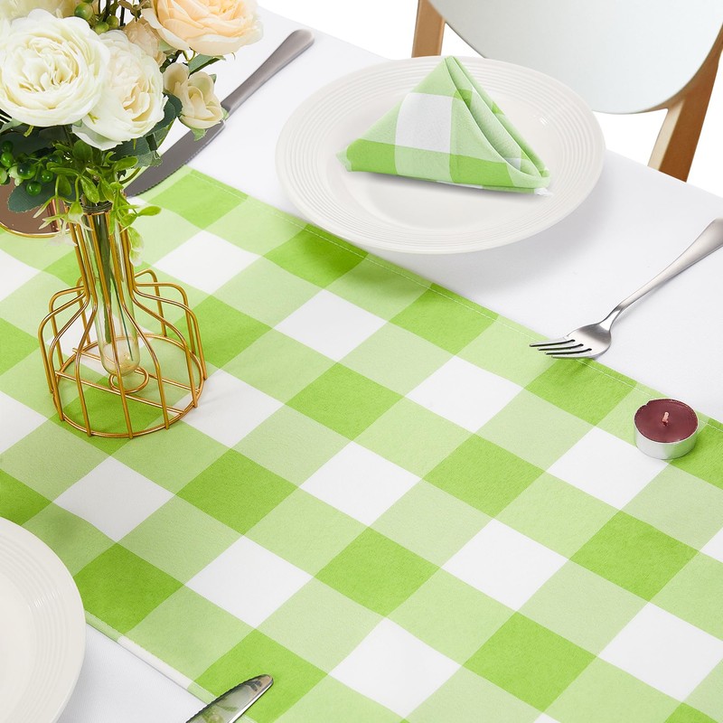 • 【Package Includes】 100% polyester checkered table runner, measuring 14" x 108", large enough for rectangular and round tables. Classic checkered pattern, simple and stylish, not only ideal for weddings and banquets, but also to impress your guests. We offer 1-piece, 6-piece and 12-piece quantities, in addition, there are 9 different colors to choose from, you are free to choose according to the size and needs of the party.