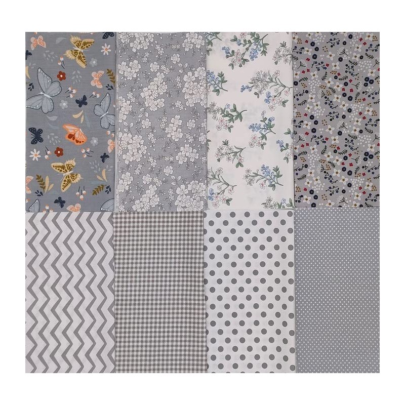 Fabric Material for Sweing,Fat Quarters Cotton Craft Fabric Patchwork Fat Squares 8 Pack 50 * 40cm Sewing Patchwork Different Pattern Cloths DIY Scrapbooking Artcraft (Gray-8)