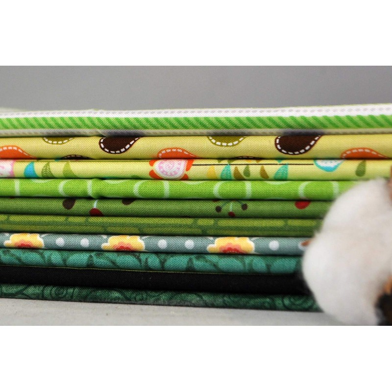 Fabric Scraps Color Bundle Green,10 Fat Eighths, 1 1/4 Yards Total