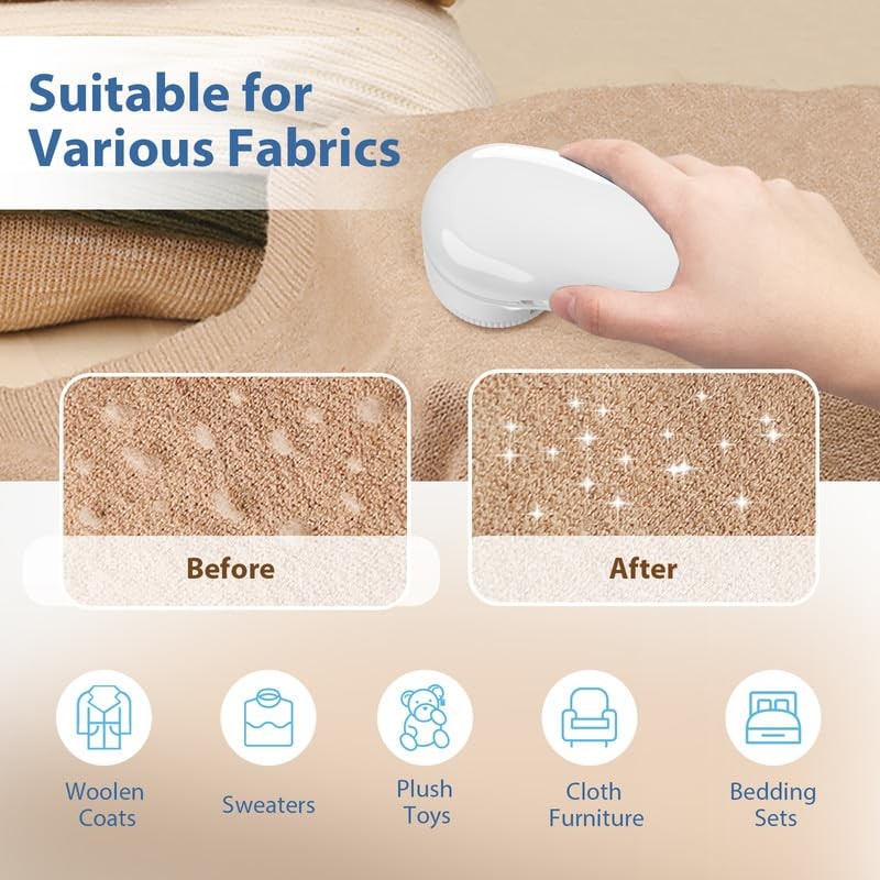 - 🧥【Quick And Efficient Fabric Shaver】This fabric remover comes with 3 replacement 6-leaf blades and with powerful speed. The combination of high quality blades and powerful motor will help you easily remove pilled, lint and fuzz balls from all fabric surfaces such as clothes, furniture and bedding sets. Gives your clothes, scarves, gloves, plush toys, sofas, carpets, cushions and quilts a fresh look in just a few minutes.