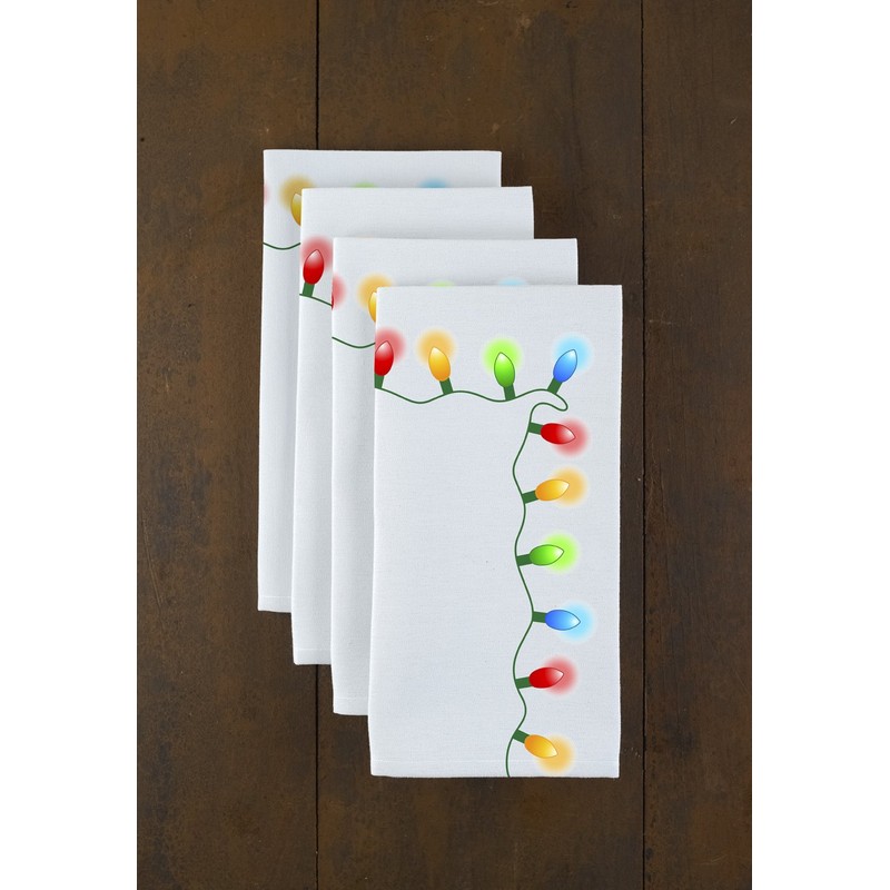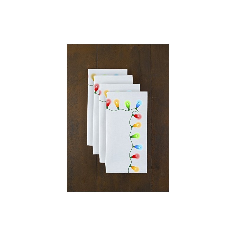 Fabric Textile Products Christmas Lights Border Napkins 18"x18" - 1 Dozen