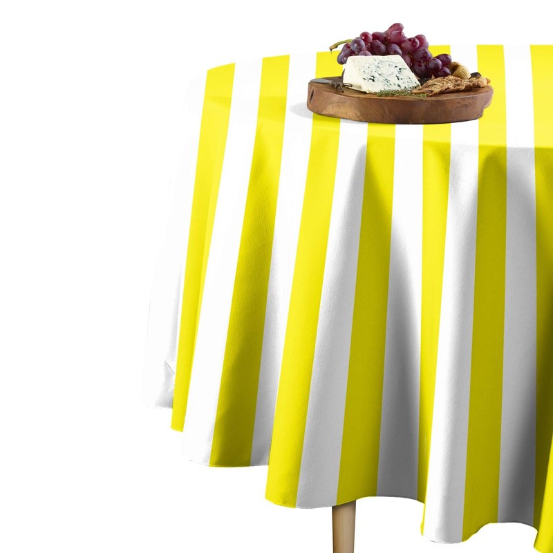 Fabric Textile Products Round Tablecloth, 100% Milliken Polyester, Machine Washable, 120" Round, 3" Cabana Stripe, Yellow & White