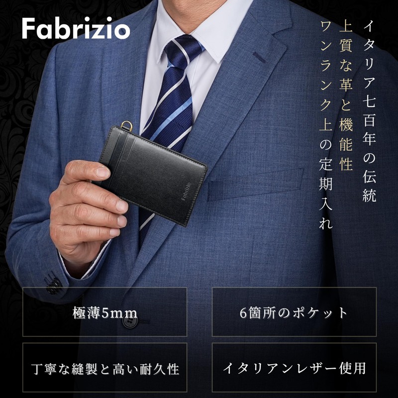Fabrizio Men's Pass Case, Commuter Holder, Card Holder, Italian Leather, Thin, Genuine Leather, Card Slot, IC Card Case, Card Holder, License Case, Black
