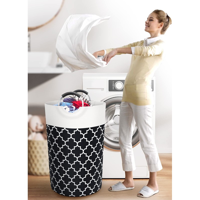 Fabspace Large Laundry Basket Laundry Hamper Bag Washing Bin Clothes Bag Collapsible Tall With Handles Waterproof Travel Bathroom College Essentials Storage For College Dorm, Family (Black)115L