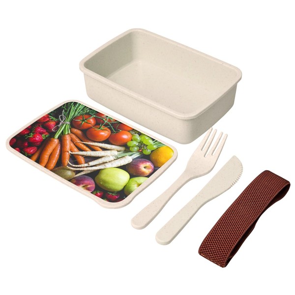 Fabulous Lunch Box Lunch Box with Cutlery, Various Vegetables and Fruits, Fresh Carrots, Orange and White, Strawberries, Grapes, Kiwi, Tomatoes, Apples, Healthy Food, Vegan Miam - 700ml