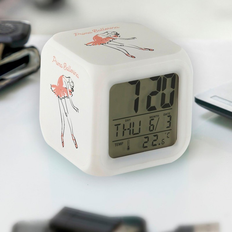 Fabulous Wecker Würfel beleuchtet Weiß – Prima Ballerina Dancer Star Illustration Ballet Drawing – 7,8 x 7,8 x 7,8 cm – Retro Beleuchtung Mehrfarbig LED
