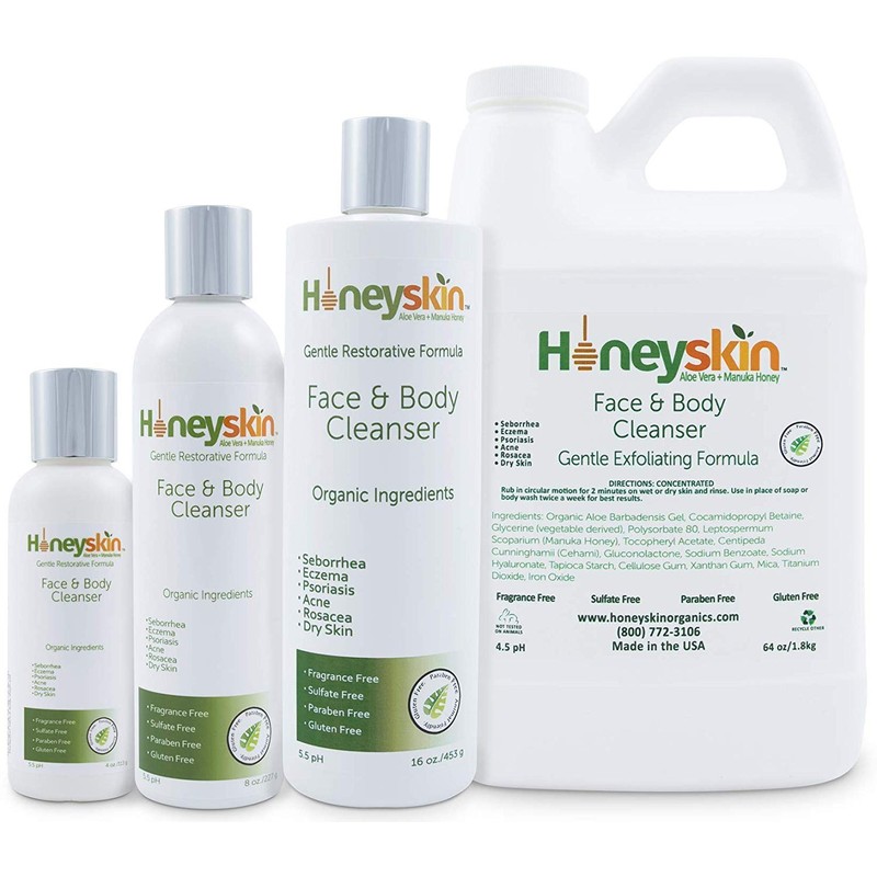- GENTLE, DEEP CLEANSING FACE AND BODY WASH - Honeyskin organic body wash & gentle face cleanser for dry skin gently yet thoroughly cleanses skin without stripping out natural oils, leaving skin feeling clean, soft, & healthy. This cleanser face wash also helps soothe & calm dry, itchy, or irritated skin.