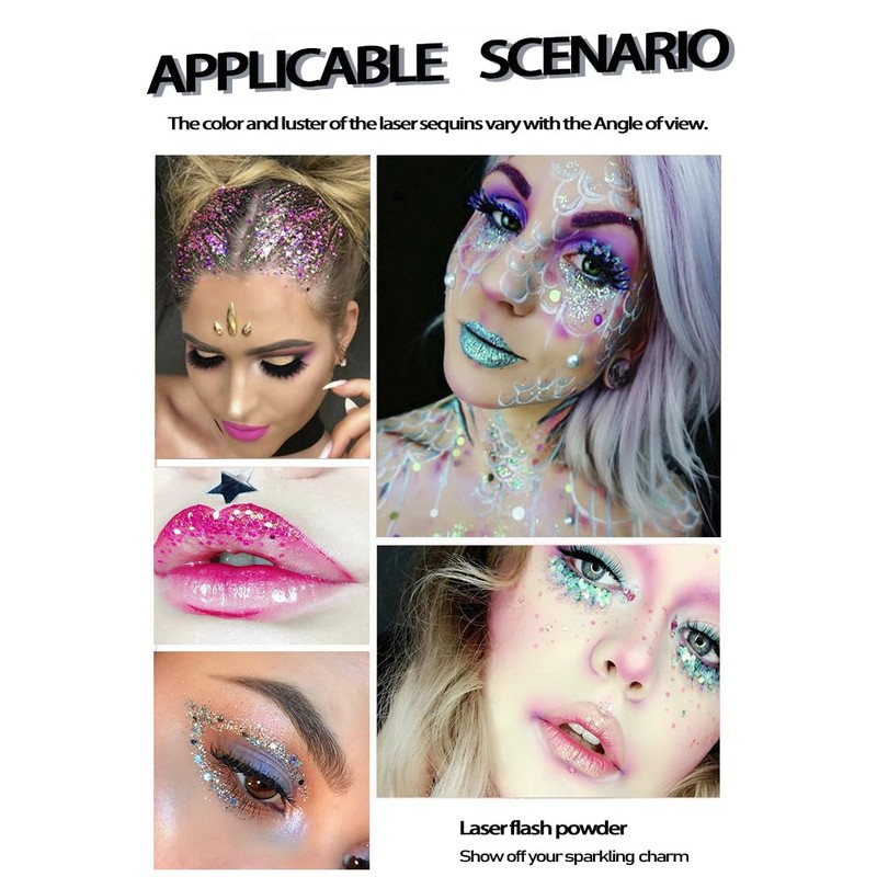 - 【Face & Body Glitter】Body glitter gel is made of safe non-toxic materials and holographic gloss, which has strong adhesion, long-lasting, not easy to fall off, lightweight and durable. The color and gloss of laser sequins vary with viewing angles. Make you stand out from the crowd and add a touch of glamour to your life.. Suitable for DIY enthusiasts, it is safe to use on the skin, very environmentally friendly, non-polluting, harmless, and also very child-friendly.