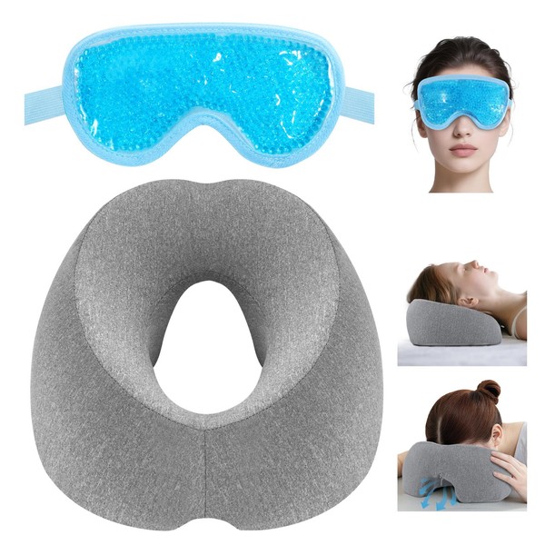 Face Down Pillow Massage Headrest for Bed, Breathable Memory Foam Face Down Pillow After Eye Surgery with Gel Eyemask for Recovery Sleeping Relaxation Massage Face Cradle for Bed Home Salon Spa